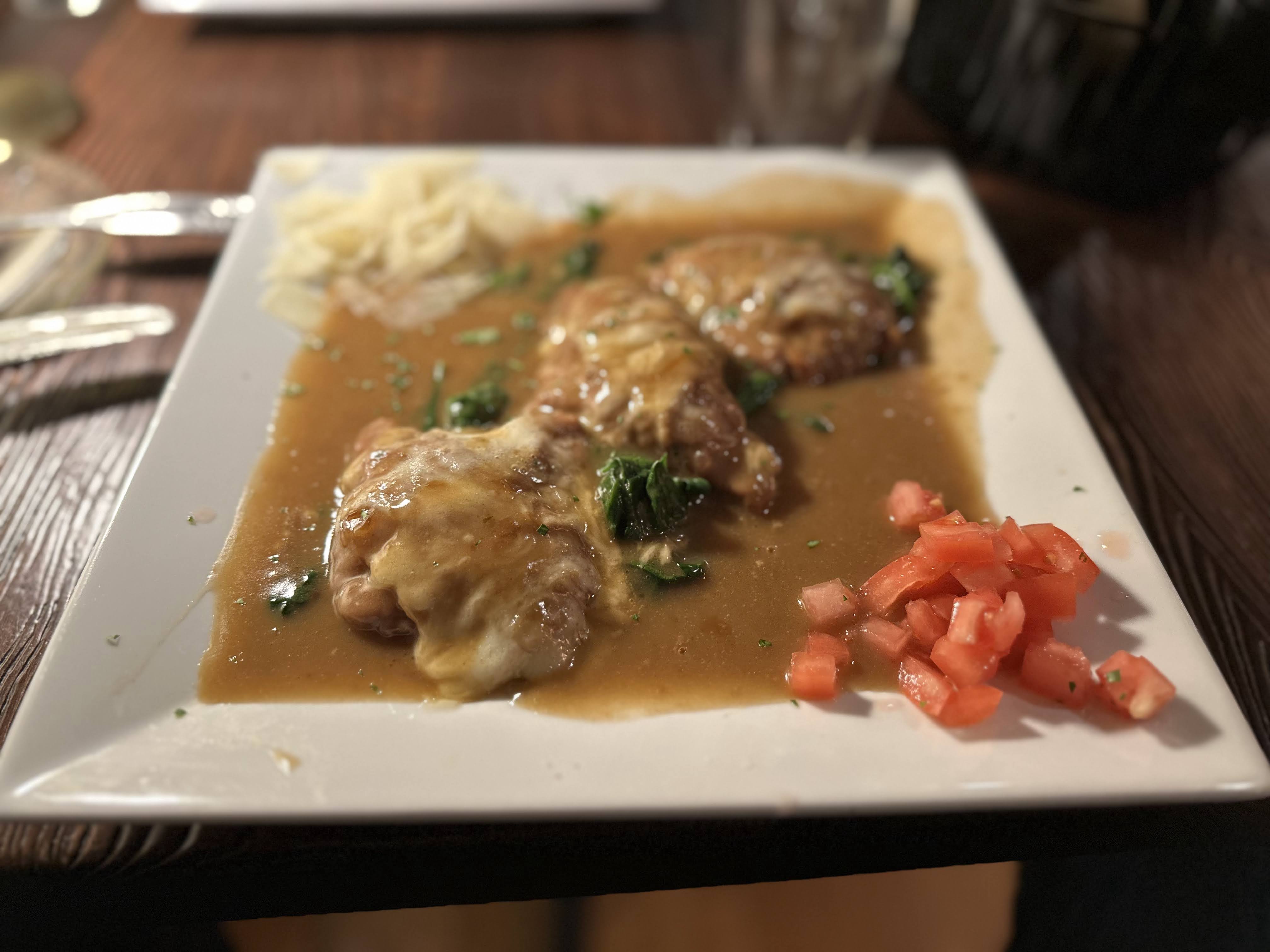 • Food: Delicious Italian dishes with generous portions; highlights included the fried stuffed gnocchi, Veal Francese, and Vitello Saltimbocca.